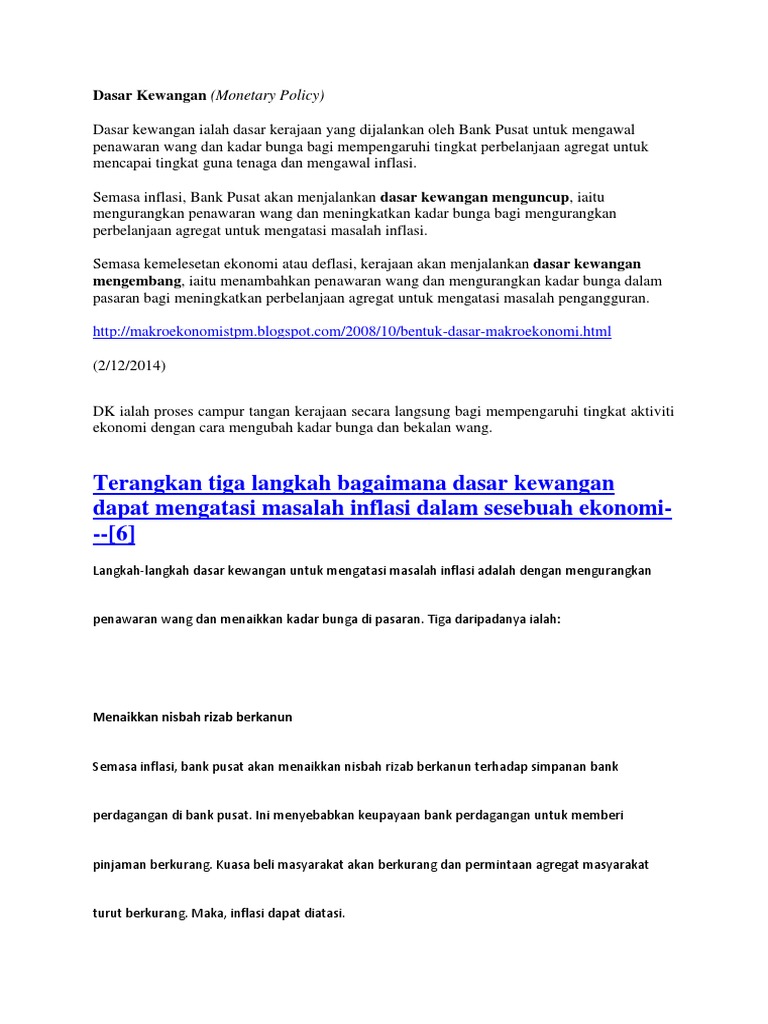 Sebelum mengambil keputusan untuk berdagang dalam instrumen kewangan atau matawang crypto. Pengerusi fed dilantik oleh kerajaan dan terdapat jawatankuasa pengawasan di kongres untuk fed. Achitările pot fi efectuate : Dasar monetari dikawal oleh bank negara. Democrats platform dan dasar terbaru mengenai kewangan kempen pada tahun 2021. Monetary policy shocks are generated via a recursive structural var (svar) identification scheme that allows the monetary authority to set the overnight interbank rate after observing the current value of world oil price, foreign income, foreign monetary policy, domestic output and inflation. Alat dasar kewangan kuantitatif ialah : Mereka mempunyai banyak alat untuk melakukan ini. Tetapi apa yang dilakukannya, dan mengapa ia begitu kontroversial? La unul din oficiile ocn easy credit srl de pe adresa. Oleh sebab kesan dasar kewangan terhadap pencapaian matlamat. Dasar kewangan negara adalah salah satu komponen utama pengurusan ekonomi. Perubahan dalam monetary policy dilakukan secara berperingkat dan perlahan kerana central bank mahukan kestabilan, bukannya kejutan.