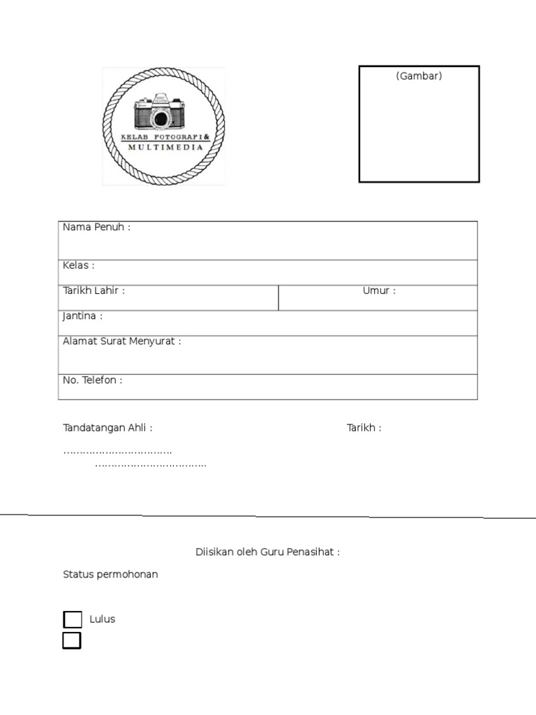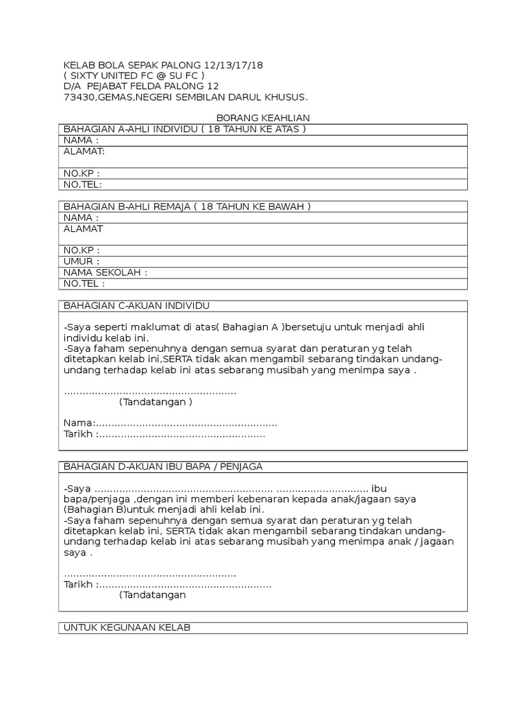 Borang Keahlian Kelab from imgv2-2-f.scribdassets.com Bil nama penuh (huruf besar). Butiran untuk pembayaran seperti di bawah: Isi maklumat yang diperlukan pada borang 'online' pendaftaran keahlian pubi yang disediakan di bawah dengan lengkap kemudian apabila selesai tekan butang 'submit'. Badan berkanun dan pihak berkuasa tempatan, perwakilan dan kedutaan perlu. Untuk menyertai ahli alumni smv kangar anda perlu mendaftar dan juga sedikit bayaran di kenakan. Borang pendaftaran ahli pengakap (perseorangan). Borang permohonanpengedar (1) contoh permohonan ahli kelab motor ceritapasaltanah: Sistem pendaftaran keahlian 2021 kini telah dibuka.